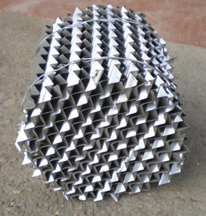 SV单元是由一定规格的波纹板组装而成的圆柱体,它的技术性能:最高的分散程隆为1—2um,液—液相及气—气相的不均匀度系数为