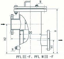 (6)篮式法兰连接高低接管平底过滤器(PFLIII—F型) (PN≤5.OMPa DN25—300)