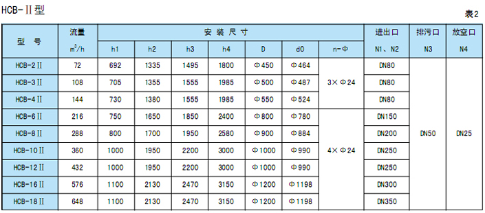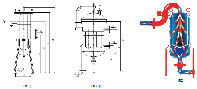4、HCB-Ⅱ型多袋式精密过滤器设计参数(见图2,表2)