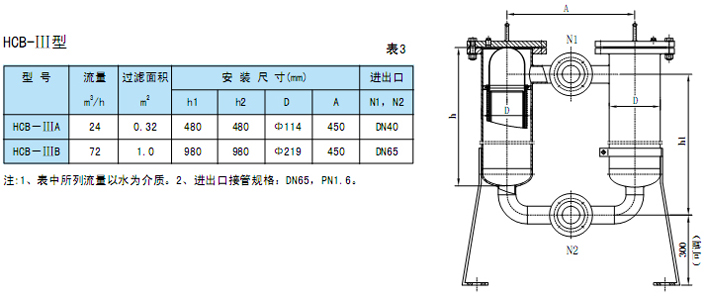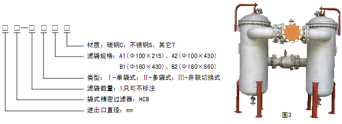 5、HCB-Ⅲ并联式袋式精密过滤器设计参数(见图3,表3)