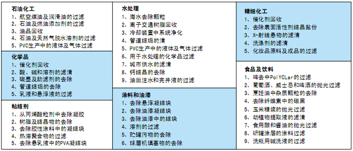 袋式精密过滤器是一个简便、高效、经济的过滤设备。需要过滤的流体从上口进入滤袋,杂质被阻挡在袋内,从而得到清洁的流体。过滤精度1~1000μ m。滤袋的材料有尼龙、聚丙烯、聚脂、聚芳酰胺、聚四氟乙烯、羊毛等。该系列产品已成功应用于中国石化股份有限公司巴陵分公司140kt/a己内酰胺改造一期工程配套双氧水完善项目、石家庄焦化集团有限责任公司10万吨双氧水工程。