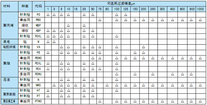 7、滤袋特征表