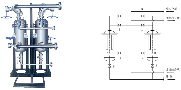 6、金属滤芯精细过滤器双桶并联切换反冲洗过滤系统(HCJ.-T型)