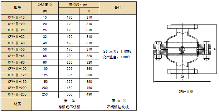 1、CFW-Ⅰ型阻火器 2、CFW-Ⅱ型阻火器 3、CFW-Ⅲ型阻火器 4、CFW-Ⅳ型阻火器 5、CFW-Ⅴ型阻火透气罩
