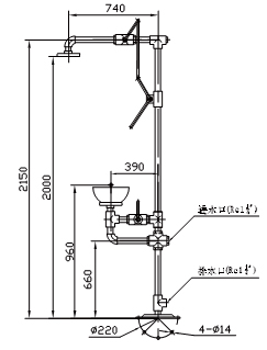 1、产品概述 Z-XYQ型系列安全事故喷淋洗眼器是使用于接触酸、碱、有机物及其它有毒、腐蚀性物质等易发生事故的场所。当发生意外伤害事故时,使用本装置进行喷淋冲洗,可将伤害减轻到最低程度,是一种安全劳动保护的必备设施。 2、产品分类、功能及选型 Z-XYQ-PⅠ型普通复合式喷淋洗眼器 1、基本功能特点 ●.带有喷啉和洗眼功能(冲洗脸部烧伤面)的普通型产品,装置中始终有水不能放空,适用于气温较暖之处。 ●.侧面进水口设有Rc11/4的内螺纹接口(或DN32.PN0.6法兰)与水源连接。 ●.顶端有一Rc11/4的内螺纹接口(或DN32.PN0.6法兰)备用进水口,当水源由上方进时,堵塞侧进水口。 ●. 当打开洗眼进水阀时,洗眼喷头自动喷水,不用时关闭进水阀门即可,使用方便。需喷淋时用手轻拉阀门拉杆,水从喷淋头自动喷出;用后须将阀门拉杆复位。 ●.在进水口处设有过滤器,确保水质清洁。 ●.由流量调节阀调节洗眼喷头喷水,确保出水柔和。